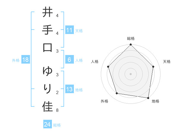 井手口 ゆり佳さんの総格は24画の5点!
