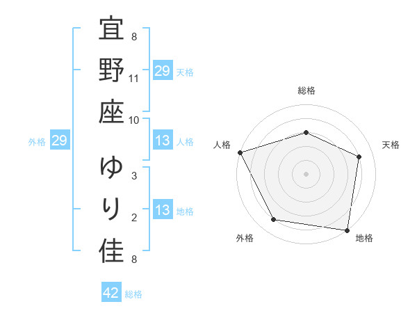 宜野座 ゆり佳さんの地格は13画の5点!