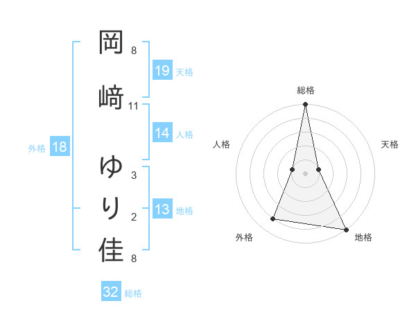 岡﨑 ゆり佳さんの総格は32画の5点!
