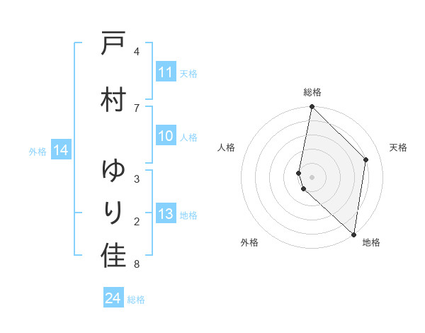戸村 ゆり佳さんの天格は11画の4点!