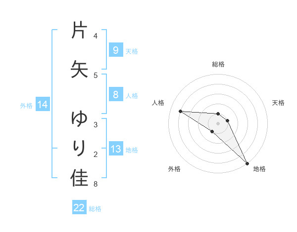片矢 ゆり佳さんを姓名の画数から五運を鑑定