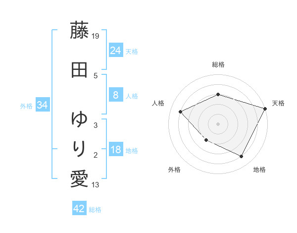 藤田 ゆり愛さんを姓名の画数から五運を鑑定