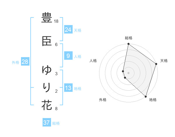 豊臣 ゆり花さんの総格は37画の5点!