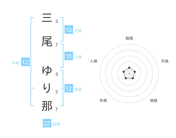 三尾 ゆり那さんを姓名の画数から五運を鑑定