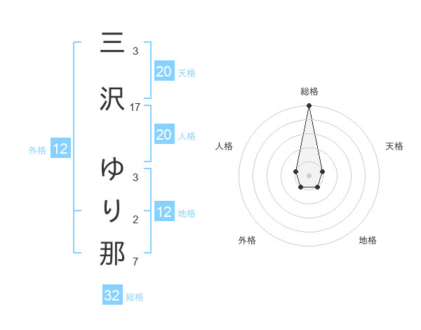 三沢 ゆり那さんを姓名の画数から五運を鑑定