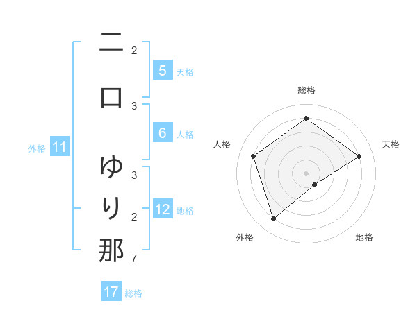 二口 ゆり那さんの総格は17画の4点!