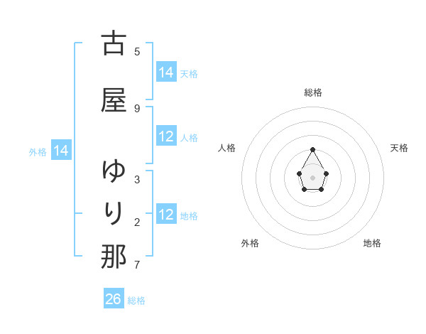 古屋 ゆり那さんを姓名の画数から五運を鑑定