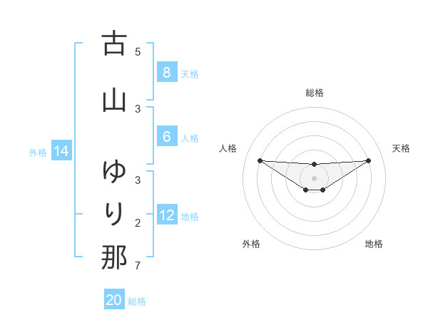 古山 ゆり那さんの総格は20画の1点!