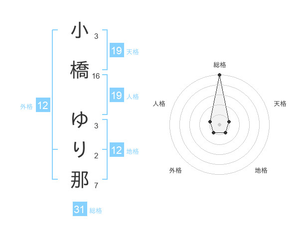 小橋 ゆり那さんの総格は31画の5点