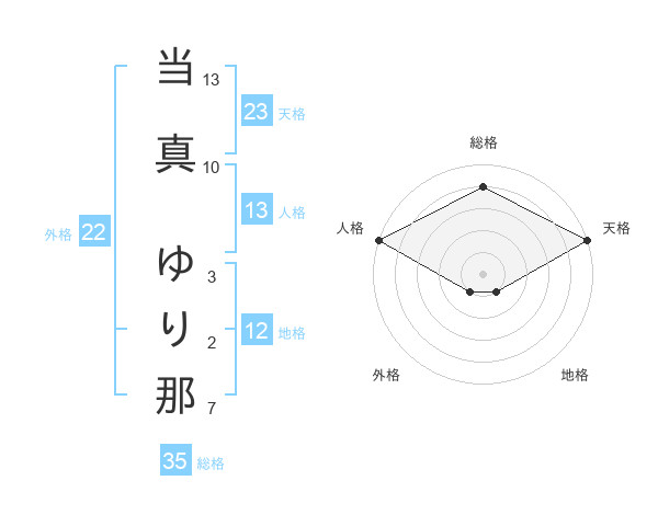 当真 ゆり那さんを姓名の画数から五運を鑑定