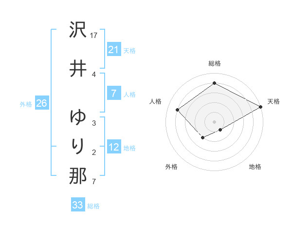 沢井 ゆり那さんの天格は21画の5点!
