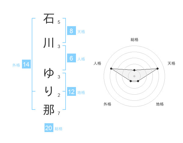 石川 ゆり那さんを姓名の画数から五運を鑑定