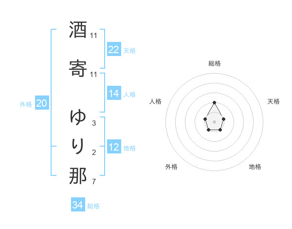 酒寄 ゆり那さんを姓名の画数から五運を鑑定