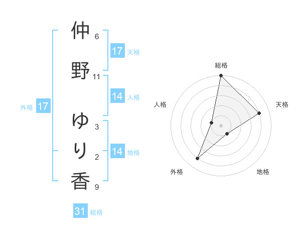 仲野 ゆり香さんを姓名の画数から五運を鑑定