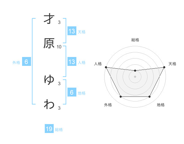 才原 ゆわさんの天格は13画の5点!
