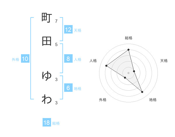 町田 ゆわさんの総格は18画の4点!