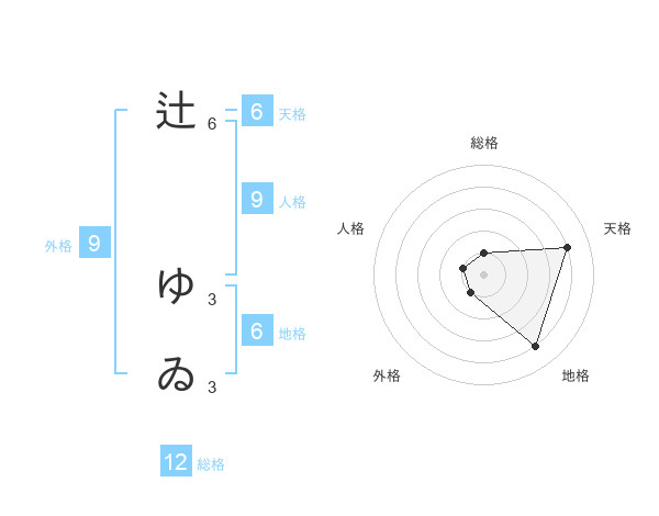 辻 ゆゐさんの総格は12画の1点!