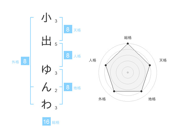 小出 ゆんわさんの天格は8画の4点!
