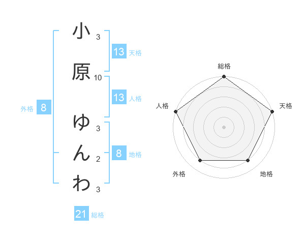 小原 ゆんわさんを姓名の画数から五運を鑑定