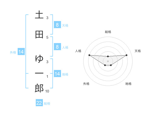 土田 ゆ一郎さんの総格は22画の1点!