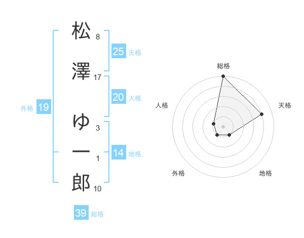 松澤 ゆ一郎さんを姓名の画数から五運を鑑定