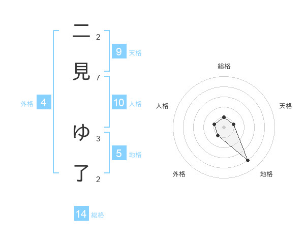 二見 ゆ了さんの地格は5画の4点!