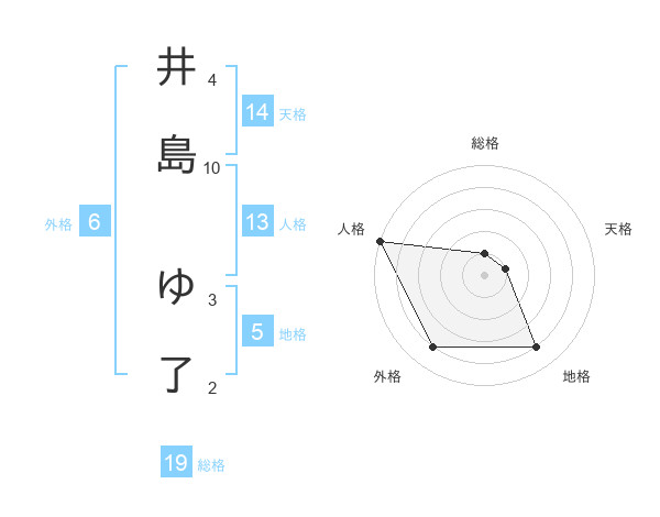 井島 ゆ了さんの外格は6画の4点!