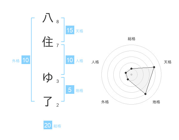 八住 ゆ了さんの総格は20画の1点!