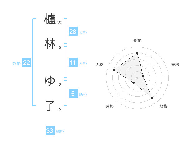 櫨林 ゆ了さんの総格は33画の4点!