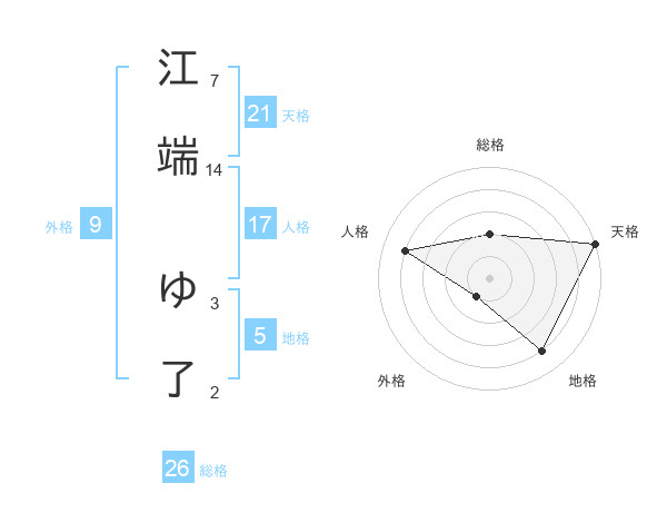 江端 ゆ了さんの天格は21画の5点!
