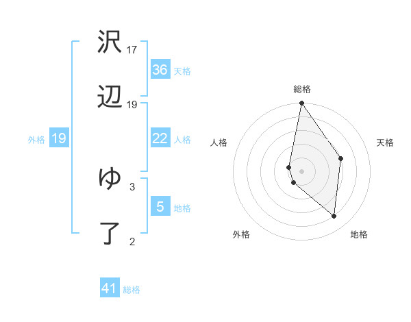 沢辺 ゆ了さんの総格は41画の5点!