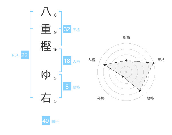 八重樫 ゆ右さんを姓名の画数から五運を鑑定