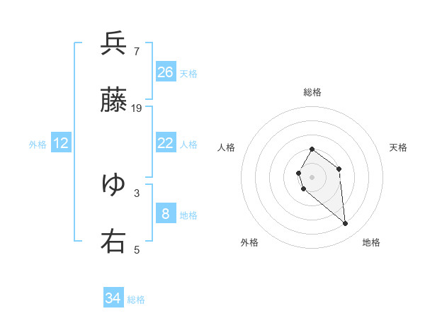 兵藤 ゆ右さんの総格は34画の2点!