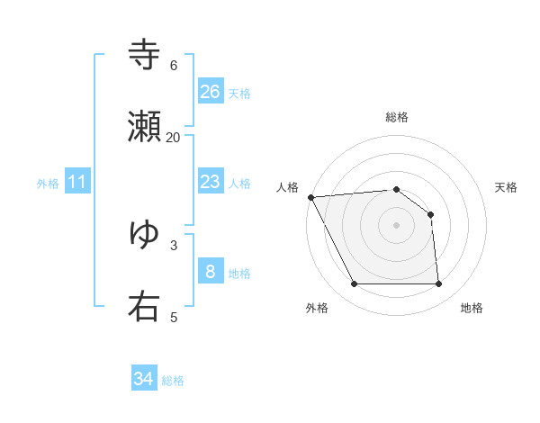 寺瀬 ゆ右さんの天格は26画の2点!
