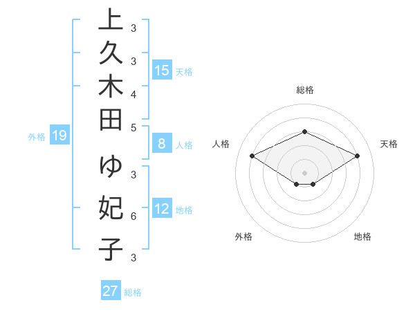 上久木田 ゆ妃子さんの天格は15画の4点!