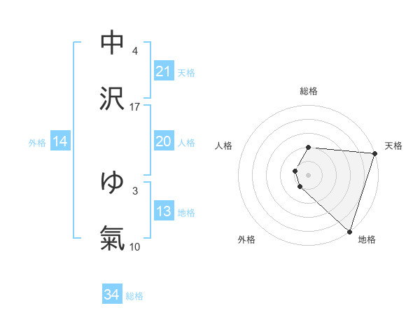 中沢 ゆ氣さんを姓名の画数から五運を鑑定