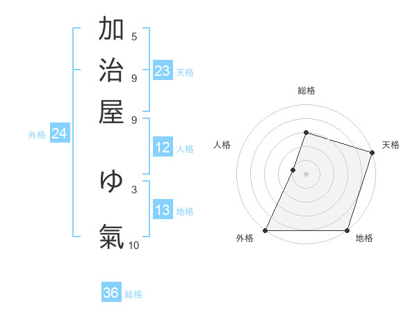 加治屋 ゆ氣さんを姓名の画数から五運を鑑定