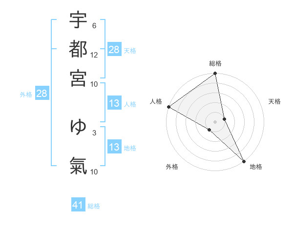 宇都宮 ゆ氣さんの総格は41画の5点!