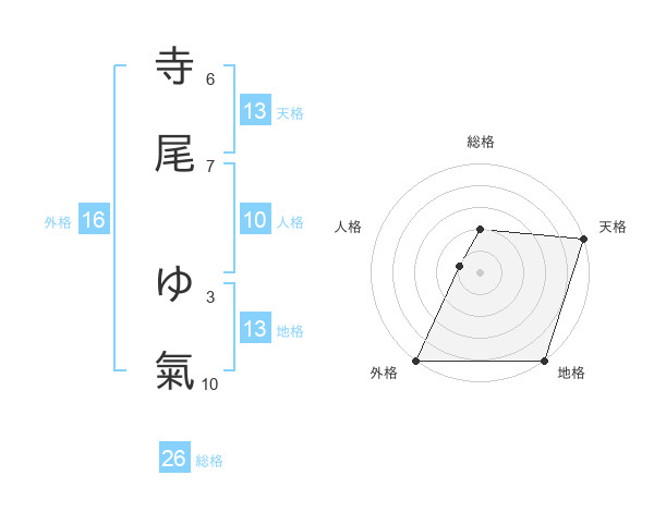 寺尾 ゆ氣さんの地格は13画の5点!