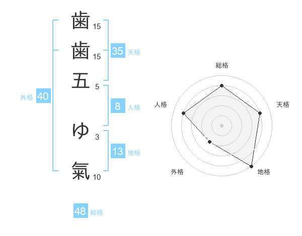 歯歯五 ゆ氣さんの総格は48画の4点!