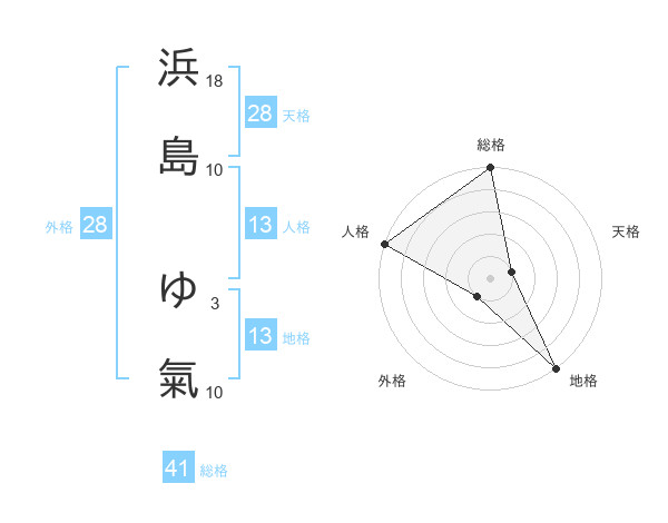 浜島 ゆ氣さんを姓名の画数から五運を鑑定