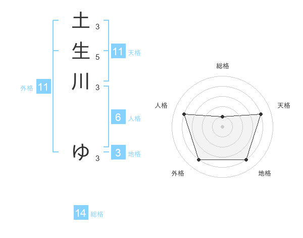 土生川 ゆさんを姓名の画数から五運を鑑定