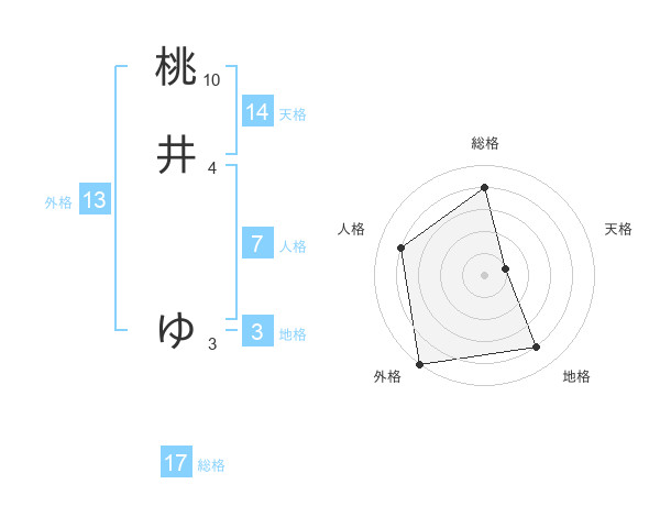 桃井 ゆさんの総格は17画の4点!