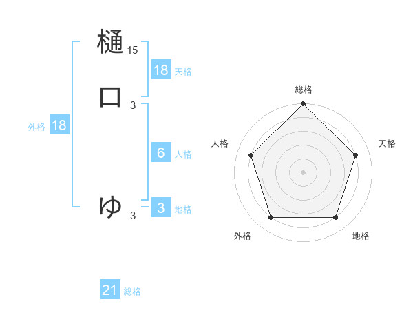 樋口 ゆさんの総格は21画の5点!