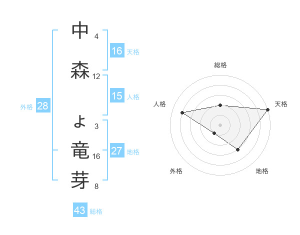 中森 ょ竜芽さんを姓名の画数から五運を鑑定
