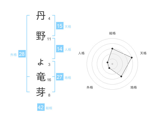 丹野 ょ竜芽さんを姓名の画数から五運を鑑定