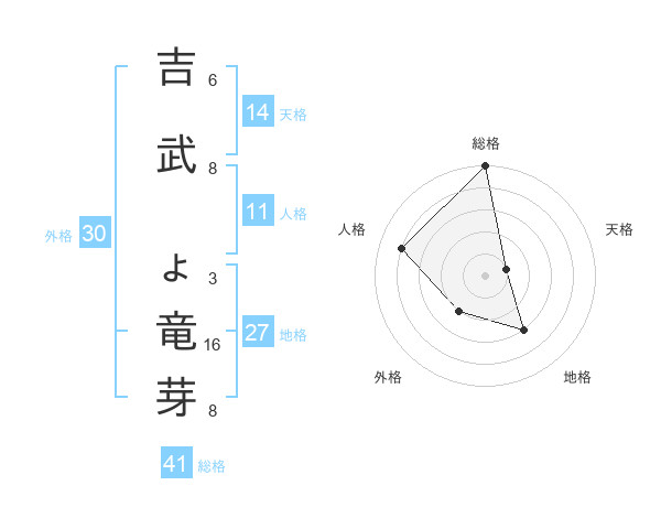 吉武 ょ竜芽さんの総格は41画の5点