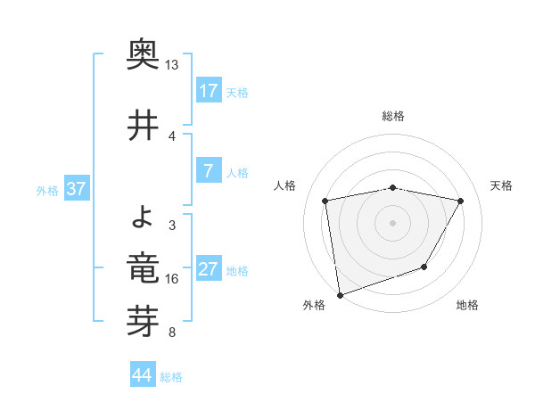 奥井 ょ竜芽さんを姓名の画数から五運を鑑定