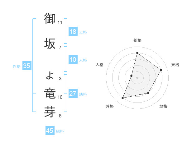 御坂 ょ竜芽さんを姓名の画数から五運を鑑定