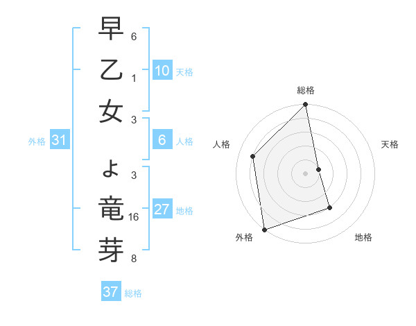 早乙女 ょ竜芽さんの総格は37画の5点!